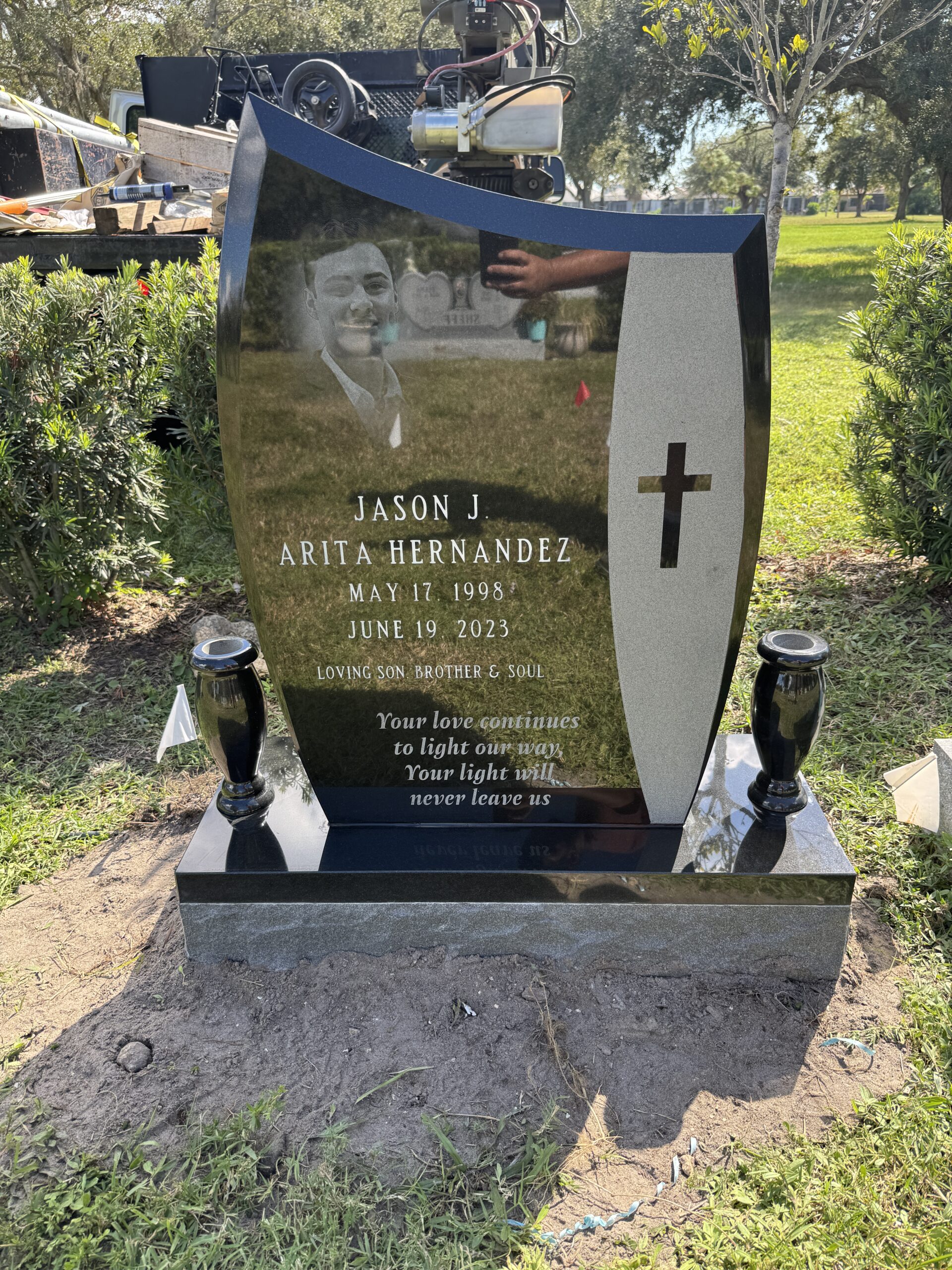Laser etched black Sunnyside Cemetery St. Petersburg, Fl